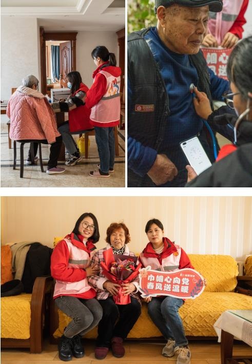 園區獨居高齡老人一直是“林景物業巾幗志愿隊”的重點服務對象,在三八婦女節當天,她們聯系醫院志愿者一起上門開展測量血壓、血糖、骨密度監測、心電圖檢查、中醫把脈等項目的服務工作。